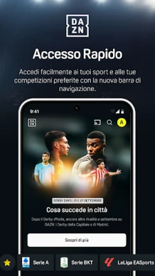 DAZN ridefinisce il tuo modo di vivere lo sport, presentandosi come la destinazione globale per ogni appassionato. Immergiti in un universo senza precedenti dove il grande calcio, dalla Serie A Enilive alla Serie BKT e LaLiga EA Sports, si unisce alla potenza della NFL, all'adrenalina della boxe e al ritmo del volley. Vivi ogni emozione, dai tornei di tennis e le gare di ciclismo ai momenti salienti degli sport invernali, inclusi gli attesi Giochi Olimpici Invernali Milano Cortina 2026 di Eurosport. Tutto ciò che ami è accessibile, live e on-demand, sui tuoi dispositivi, per non perdere mai un istante, ovunque tu sia.