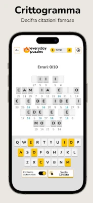 Addentrati in avventure uniche come CONSENSUS, dove indovinare le risposte più popolari della community diventa un'arte sociale. Decifra messaggi criptati nel CRITTOGRAMMA, un omaggio ai classici rompicapi carta e penna, oppure metti alla prova la tua rapidità con CLADDER, cambiando una lettera alla volta per scalare le parole. Non mancano le esclusive come PAROLA SEGRETA, che ti sfida a scoprire la parola nascosta attraverso indizi cromatici, e l'innovativo HASHTAG, che reinventa il concetto di puzzle di lettere trascinabili.