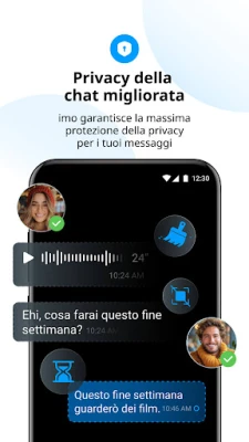 La tua privacy è la nostra priorità assoluta. imo integra funzionalità avanzate come Messaggi a scomparsa, Chat riservata, Protezione dello schermo e Crittografia end-to-end per blindare le tue comunicazioni. Hai il controllo totale: cancella messaggi, imposta timer di autodistruzione e impedisci screenshot, copia, condivisione o download nelle tue chat più private, garantendo che le tue conversazioni rimangano solo tue. Ma imo non è solo messaggistica privata; è anche un luogo per connettersi e condividere gioia. Unisciti o crea stanze su VoiceClub per eventi live, spettacoli di talenti, talk show, competizioni e giochi, creando comunità vivaci con amici e familiari da ogni angolo del globo.