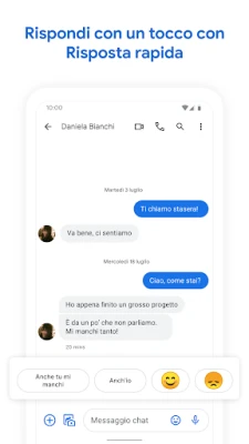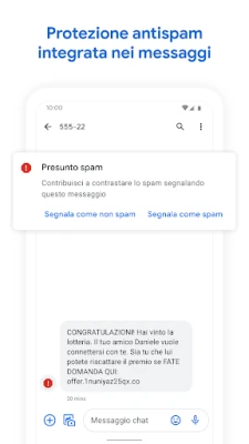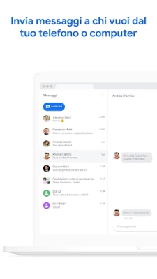 La tua privacy è la nostra priorità assoluta. Con Google Messaggi, ogni conversazione personale è protetta da crittografia end-to-end tra gli utenti di Google Messaggi, garantendo che solo tu e il tuo destinatario possiate leggere i contenuti, lontano da occhi indiscreti, inclusi quelli di Google e di terzi. A questo si aggiunge una protezione avanzata contro lo spam, per un'esperienza di messaggistica serena e sicura. La libertà di comunicare si estende anche tra i tuoi dispositivi: avvia una conversazione sul tuo smartphone e riprendila senza interruzioni sul tablet o sul computer. L'applicazione è comodamente disponibile anche per Wear OS, mantenendoti connesso ovunque tu sia.