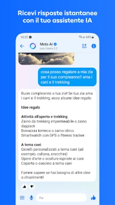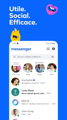 Scopri un nuovo universo di connessioni con Messenger, la tua porta d'accesso a conversazioni senza confini. Che tu voglia chiacchierare o fare una chiamata, connettiti facilmente con i tuoi cari e la tua cerchia di amici su Facebook, senza bisogno di un numero di telefono. Ogni messaggio, ogni foto in alta definizione che invii, è un frammento di vita condiviso con la massima chiarezza. E per ogni interrogativo, ogni idea, il tuo assistente personale Meta AI è sempre a disposizione per offrirti risposte rapide, consigli perspicaci e supporto creativo, rendendo ogni interazione più ricca e intelligente.