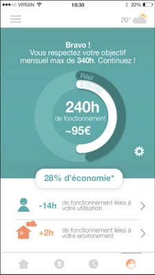Prendi il pieno controllo dei tuoi consumi energetici e scopri il potenziale del risparmio. Con l'applicazione per il tuo termostato connesso Somfy, puoi monitorare in modo dettagliato l'energia impiegata per il riscaldamento, visualizzando trend e dati significativi. Non solo numeri: riceverai consigli personalizzati e strategie mirate, sviluppate per aiutarti a ottimizzare l'uso del tuo sistema Somfy e a ridurre sensibilmente le spese sulle bollette, contribuendo attivamente a un futuro più sostenibile e confortevole.